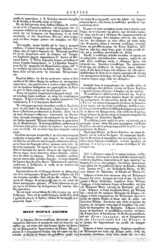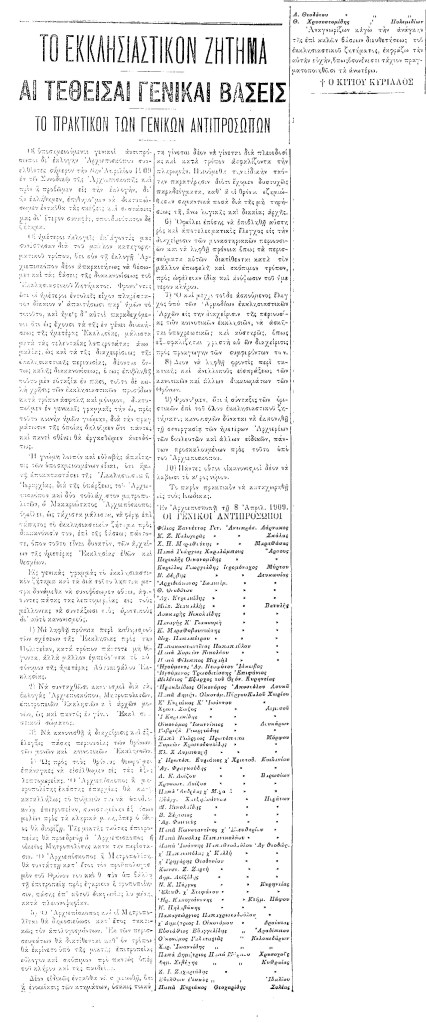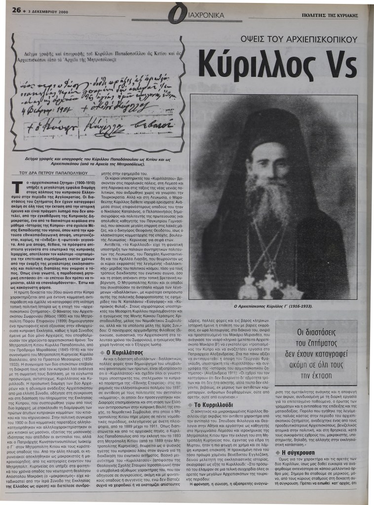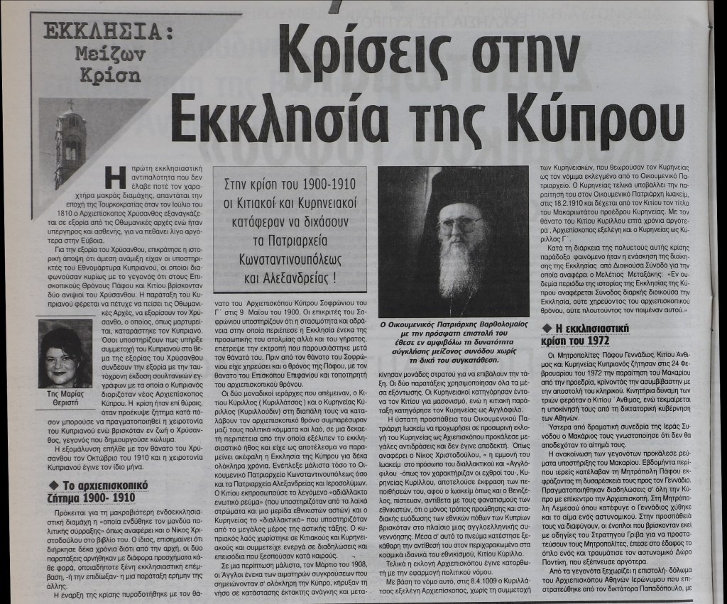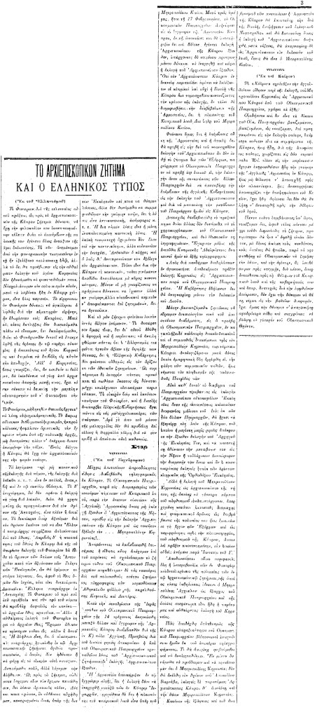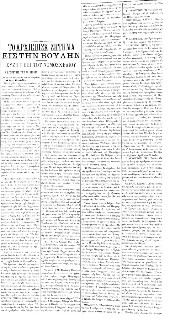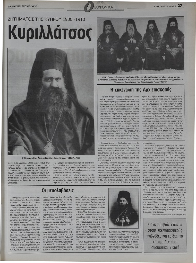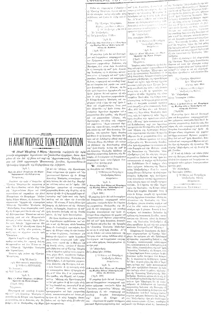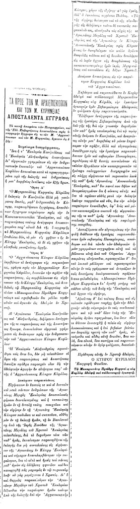 Πιο κάτω μπορείτε να δείτε σχετικά άρθρα από τον Τύπο της εποχής, που αναφέρονται στο Αρχιεπισκοπικό ζήτημα. Μεταξύ αυτών και το πρωτόκολλο συμφωνίας που υπογράφηκε μεταξύ των δύο Κύριλλων το 1910 για επίλυση του προβλήματος.