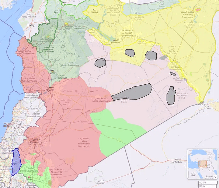 - Προέλαση των ανταρτών (HTS): Οι αντάρτες της HTS έχουν καταλάβει τη Χάμα και κινούνται προς τη Χομς. Μετά τη Χομς, ο δρόμος οδηγεί στη Δαμασκό.